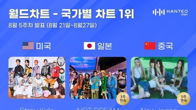 한터차트, 美 스트레이 키즈·中 뉴진스·日 엔시티 드림 각 1위 차지