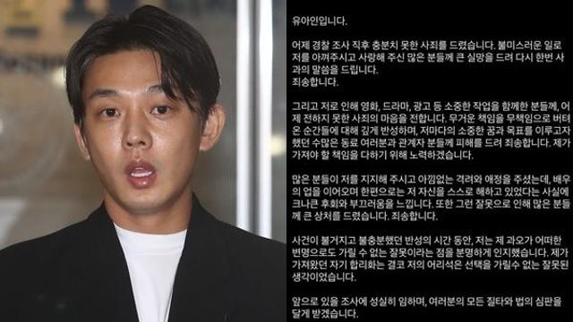 50일 만의 사과문… 유아인 법의 심판 달게 받겠다
